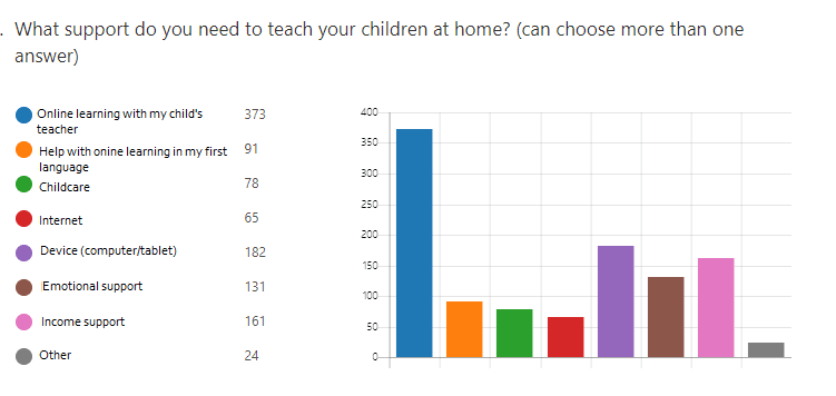 According to a new back-to-school survey by MOSAIC of more than 500 newcomer families, 72% of families said they needed additional support with online learning, while 45% of respondents identified needing support with accessing Internet or a device such as a computer or tablet.